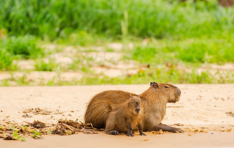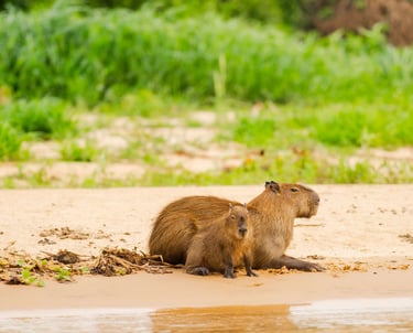 The world's largest rodent lives in large groups and can be seen along rivers and roads in the Pantanal wetlands. It is one of the most photogenic and easiest animals to spot.